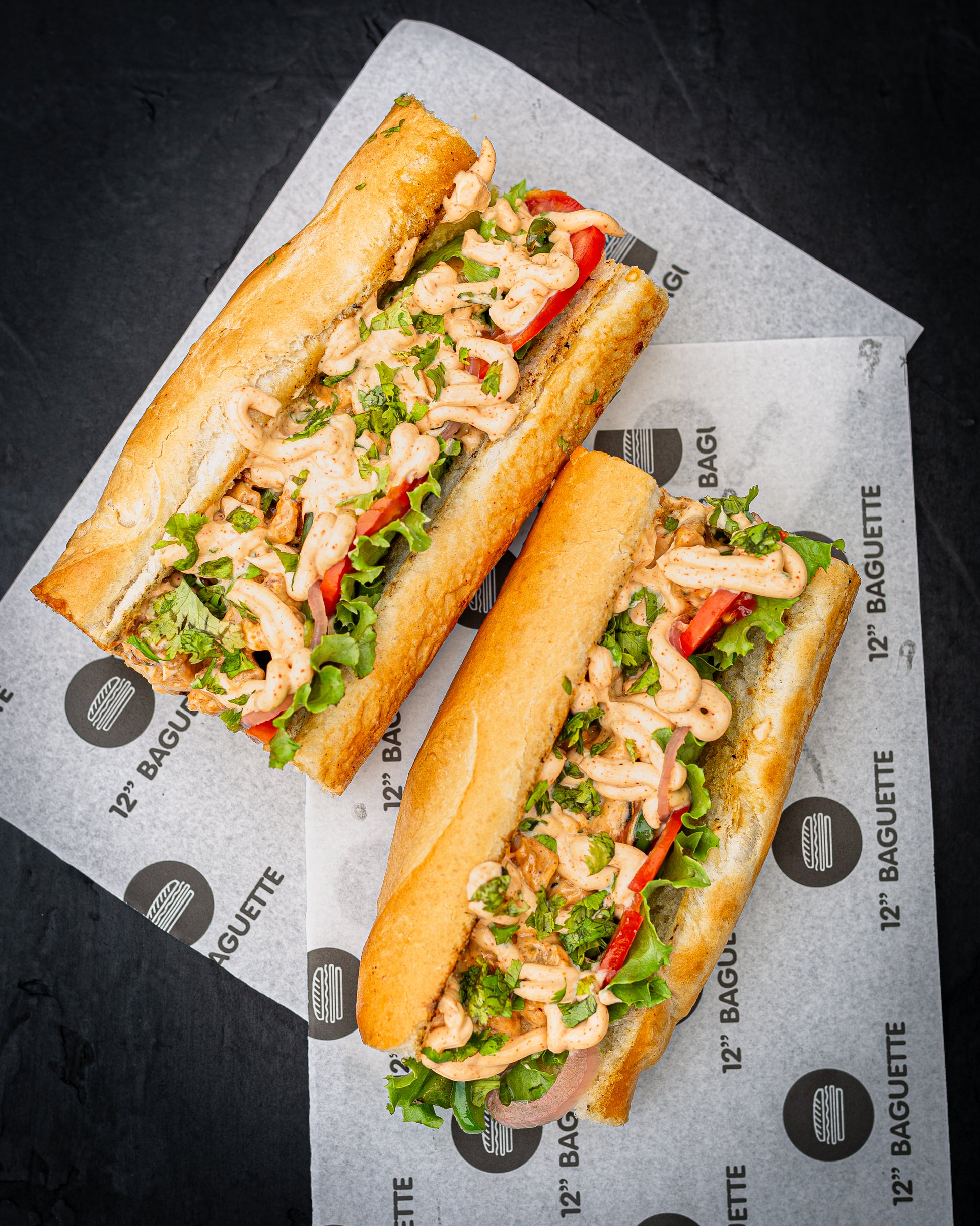 3- spice pan seared chicken breast with lettuce, tomatoes, pickled onion, parsley, sriracha mayo, bbq sauce and sweet chilli